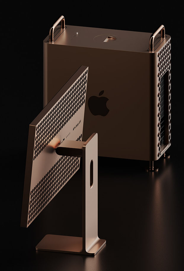 The series of high quality visualization renders are based on Apple products in a proposed gold color. The idea is to showcase some stylish, realistic photos of Apple product such as iMac (Pro), MacBook and Mac Pro in gold version. As we know, almost of all Apple computers are offered in two color options at the moment (excluding Macbook 12 & MacBook Air 2019). So, we wonder - what if gold?